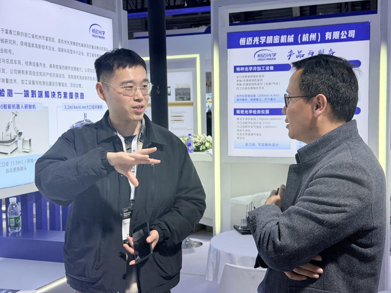 尤为引人注目的是,展台前不乏外国参观者的身影,他们或驻足细观,或与恒迈团队深入交流,对恒迈光学的前沿技术表示出浓厚兴趣。这些国际友人的到来,不仅为恒迈展台增添了国际化色彩,更为恒迈光学提供了与国际同行切磋技艺、共谋发展的宝贵机会。